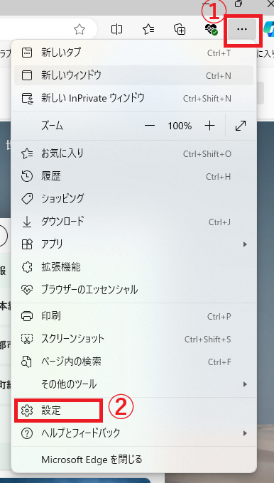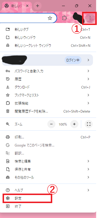 グーグルクロームのホーム画面の右上「…」をクリックし