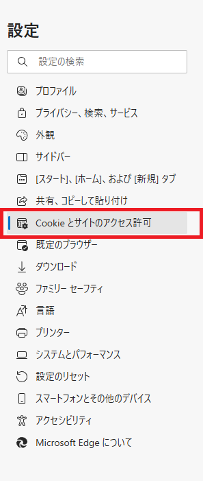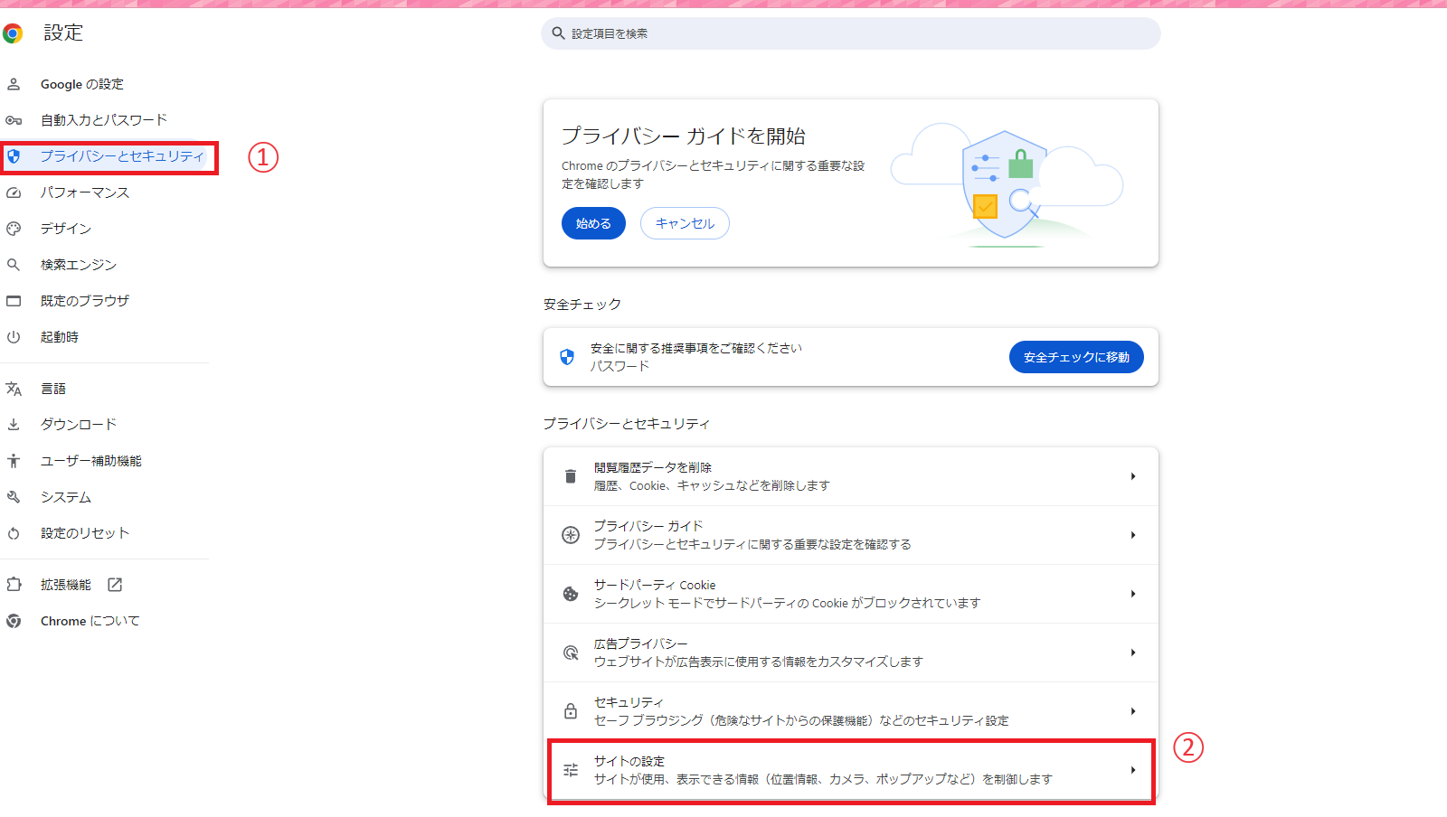 左のメニューから「プライバシーとセキュリティ」をクリック