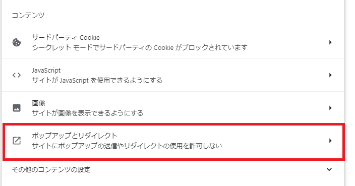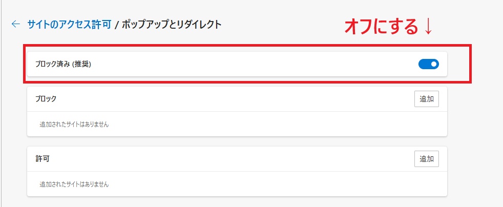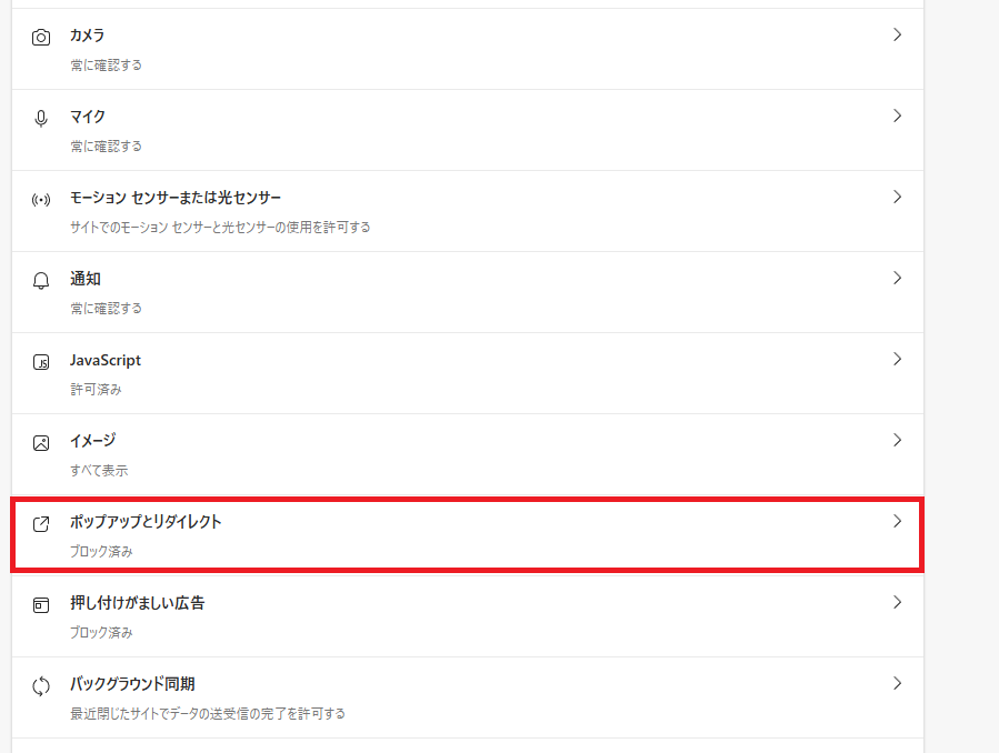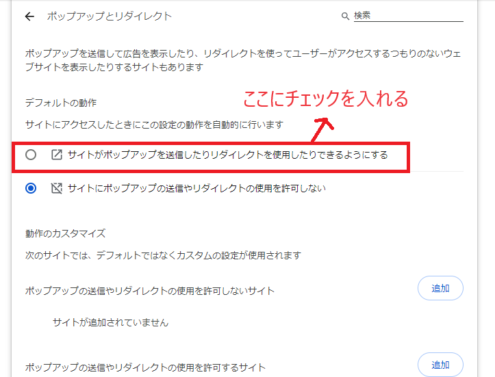 「サイトがポップアップを送信したりリダイレクトを使用したりできるようにする」