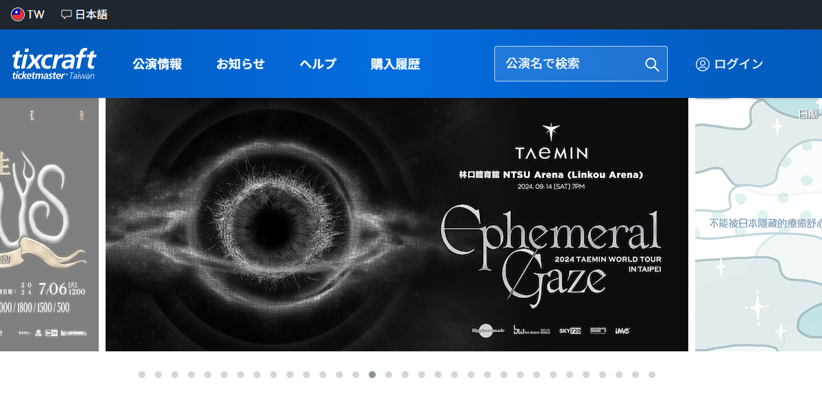 Tixcraftは主に台湾公演のチケットが購入できる